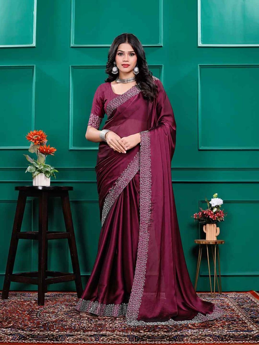 Fabric: Premium Silk Work/Design: Swarovski Diamond Lace Border Work Saree Length: 5.5 meters Blouse Piece: 0.8 meters (Unstitched) Style: Designer Party Wear / Festive Saree / Wedding Saree Occasion: Weddings, Parties, Receptions, Festive Celebrations Special Feature: Elegant Swarovski diamond lace with glossy silk finish Care Instructions: Dry clean only Elevate your ethnic wardrobe with our Luxury Silk Swarovski Diamond Lace Work Saree, a timeless blend of elegance and sophistication. Crafted from premium quality silk, this saree drapes effortlessly, giving you a graceful and royal look for every occasion. The delicate Swarovski diamond lace detailing along the border adds a sparkling charm, making it the perfect choice for weddings, parties, festive celebrations, and special evenings.