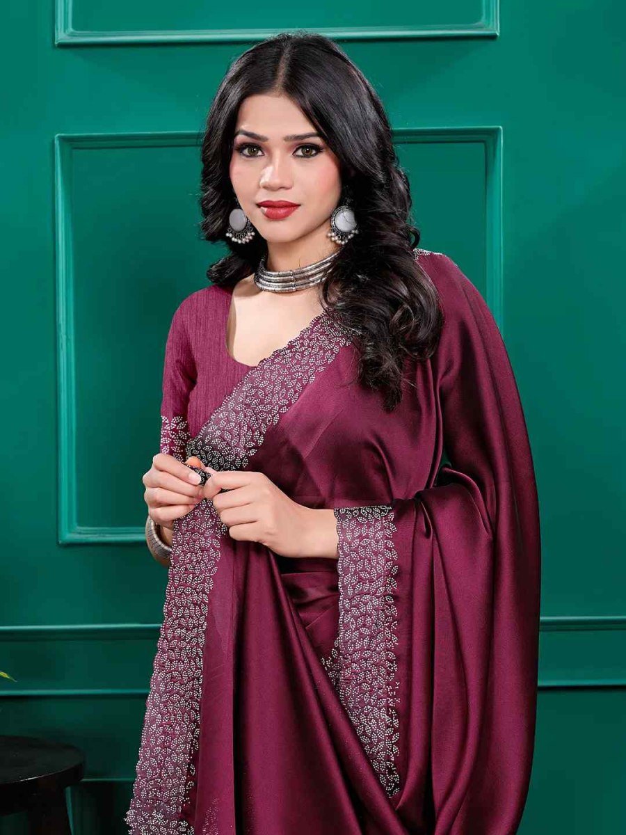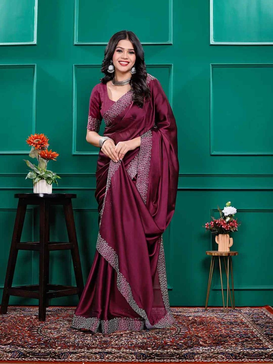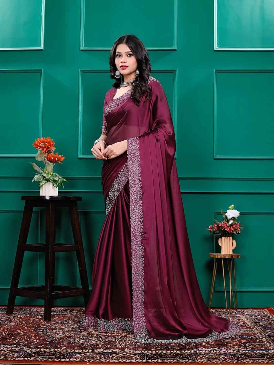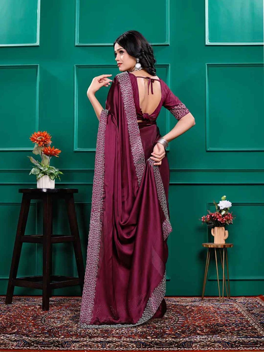 Luxury Silk Saree with Swarovski Diamond Lace Work Unstitched Blouse Piece