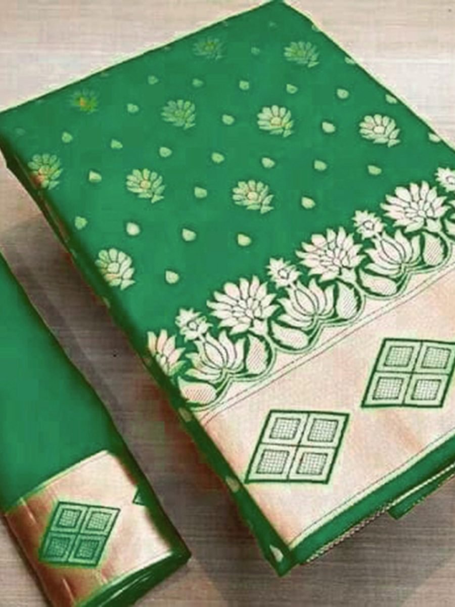 Parrot Green Banarasi Pure Silk Saree with Gold Zari for Weddings