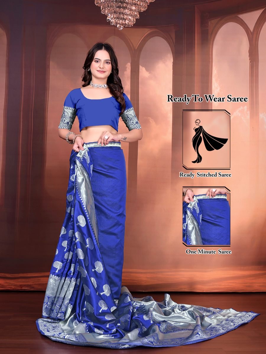 Designed for the modern woman who values both tradition and convenience, this saree comes with pre-stitched pleats, hooks, and doris—making it effortless to wear and perfect for those who are always on the go.