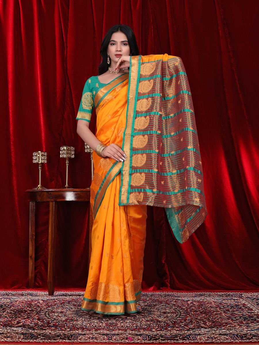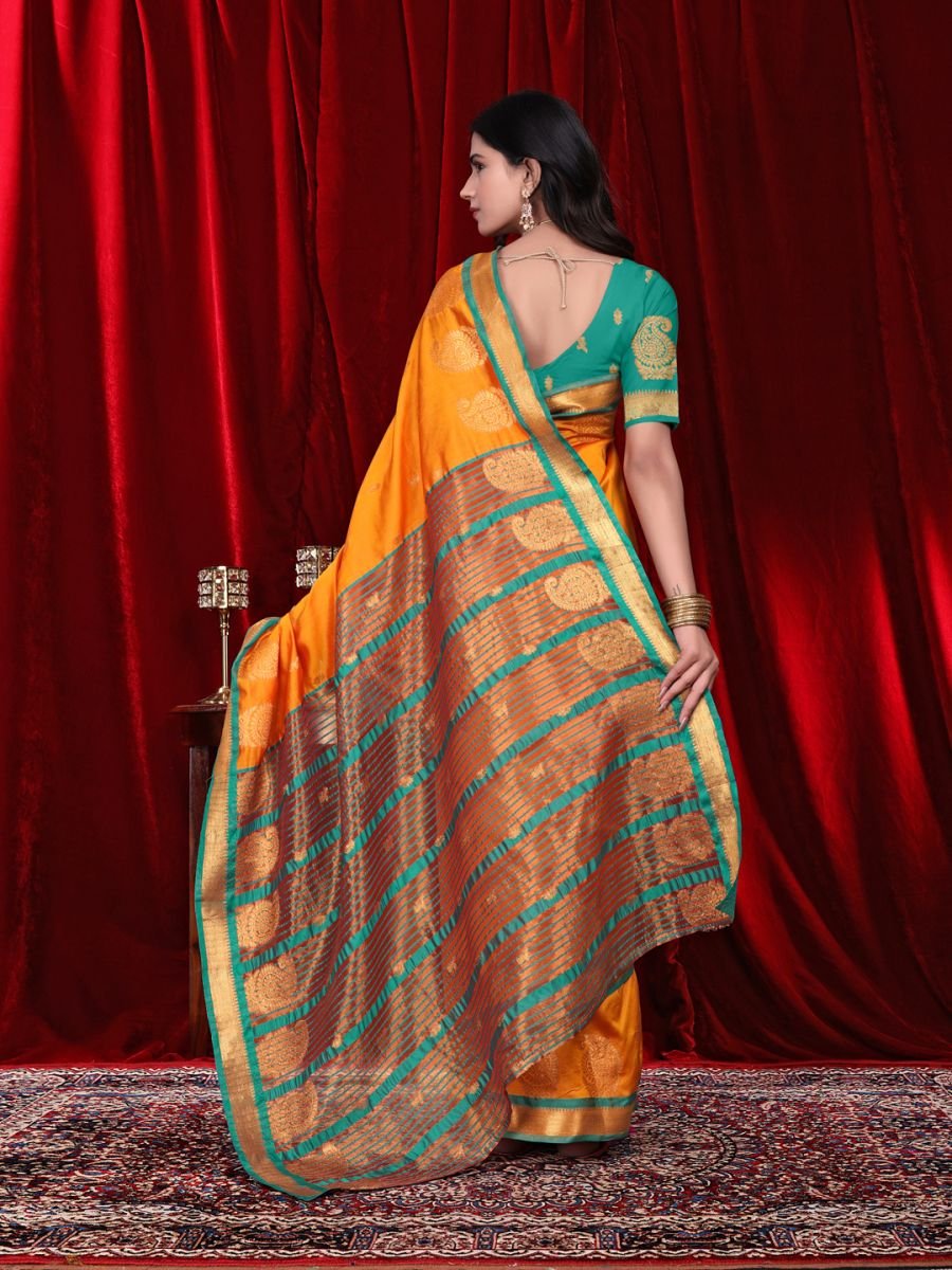 Fabric Type: Jacquard with Pure Silk texture for a rich and elegant look Ready to Wear Design: Comes with pre-stitched pleats, hooks, and doris – no draping skills needed Included Blouse Piece: Unstitched blouse fabric (0.8 meters) for personalized tailoring Saree Length: 5.5 meters – perfect drape length for most body types Comfort All Day: Breathable, soft fabric suitable for long hours of wear Versatile Occasion Wear: Ideal for parties, festive celebrations, office functions, daily wear, and evening events Color Disclaimer: Actual product color may slightly vary due to lighting and display settings