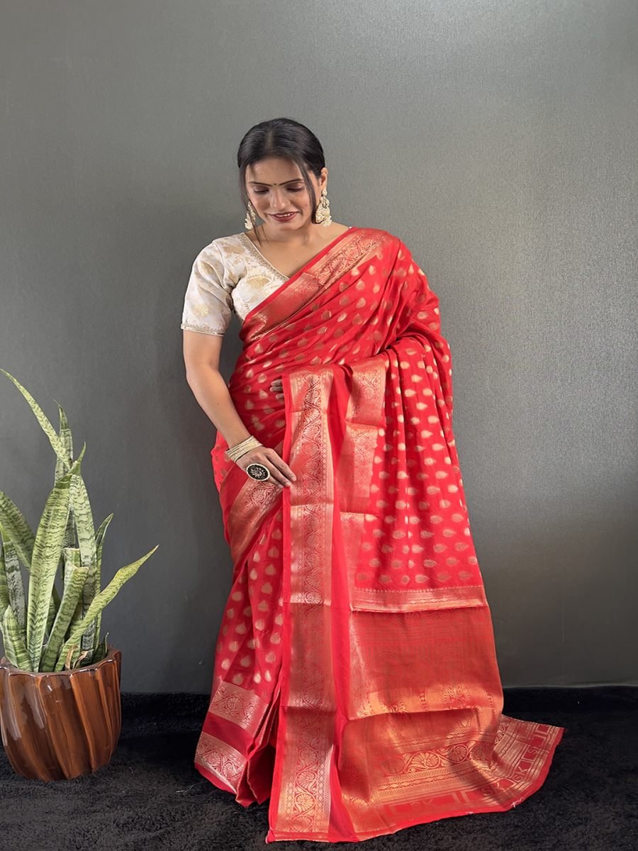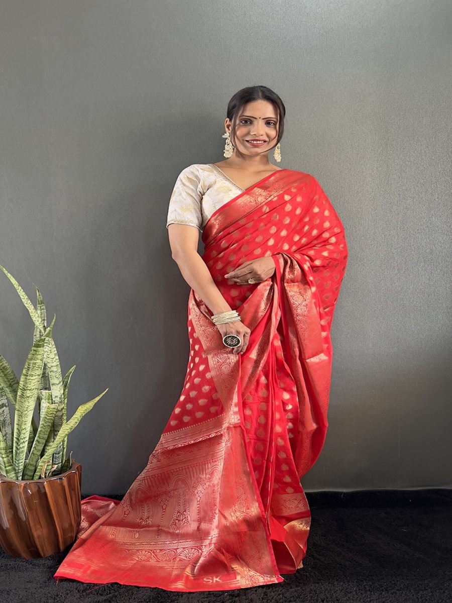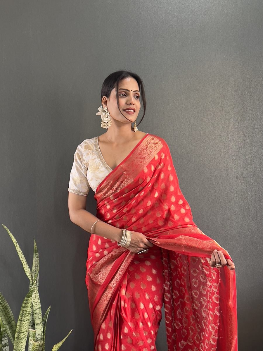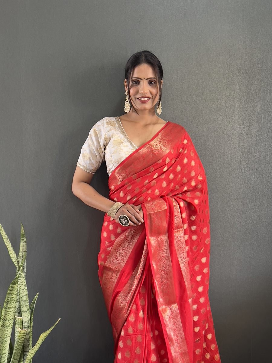Red Ready to Wear Pure Banarasi Georgette Saree