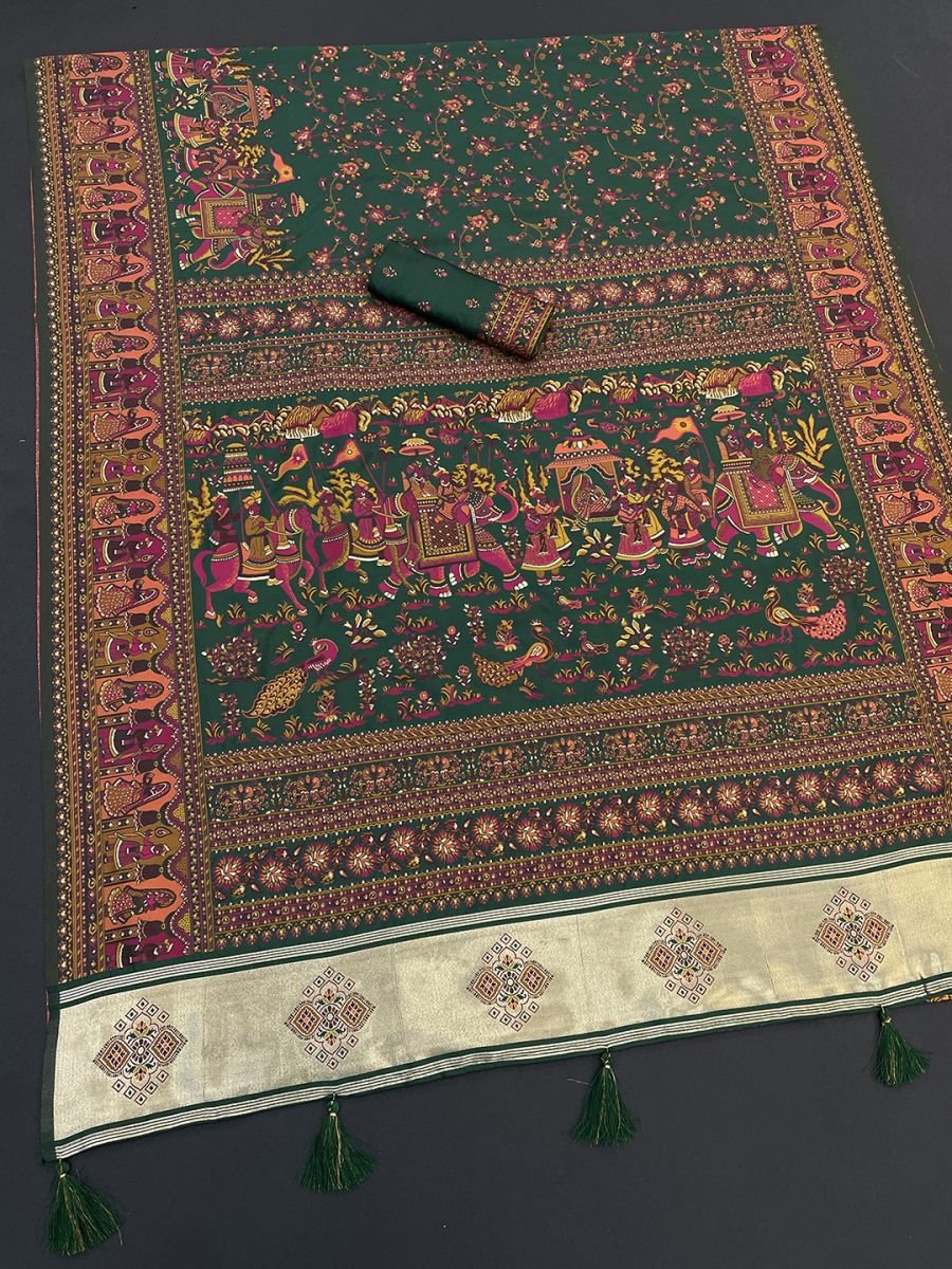 Green Floral Printed Woven Zari Pashmina Saree