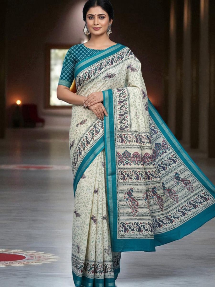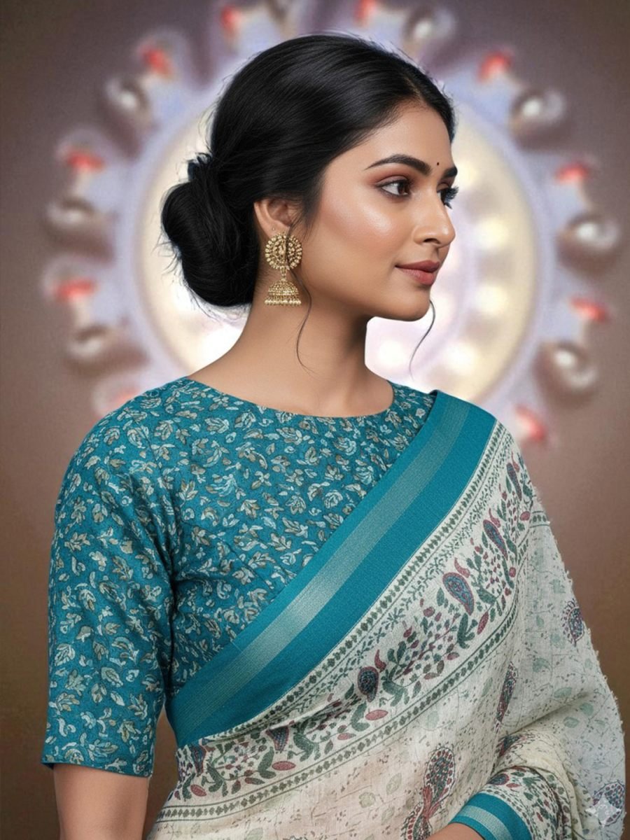 Material: 100% Pure Handloom Cotton Weave Type: Handloom Print Type: High-Resolution All-Over Digital Print Saree Length: 5.5 Meters Blouse Piece: Yes, an attached 0.8-meter blouse piece with a matching print. Weight: Lightweight Feel: Soft, comfortable, and breathable fabric. Easy to drape. Care Instructions: Gentle hand washing in cold water with mild detergent is recommended. Do not bleach or wring. Dry in a shaded area to preserve the colors. Use a warm iron. Occasion: Office Wear, Daily Wear, Casual Outings, Festive Brunches, Small Gatherings. Package Contains: 1 Saree with Attached Blouse Piece. Disclaimer: Product color may slightly vary due to photographic lighting sources or your monitor settings. Minor irregularities are a characteristic of the handloom weaving process and add to the product's charm. Woven by skilled artisans, the pure cotton fabric is the soul of this saree. It is incredibly lightweight, soft against the skin, and exceptionally breathable, making it a perfect companion for the Indian climate. The inherent texture of handloom adds a touch of authenticity and character that machine-made fabrics cannot replicate. Enjoy comfort that lasts all day, whether you're in an office meeting or at a casual get-together.
