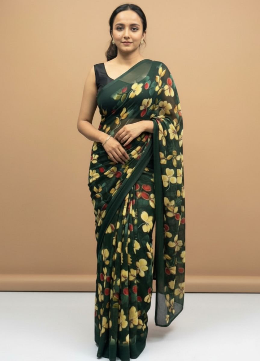 Vibrant Floral Print Georgette Ready to Wear Saree
