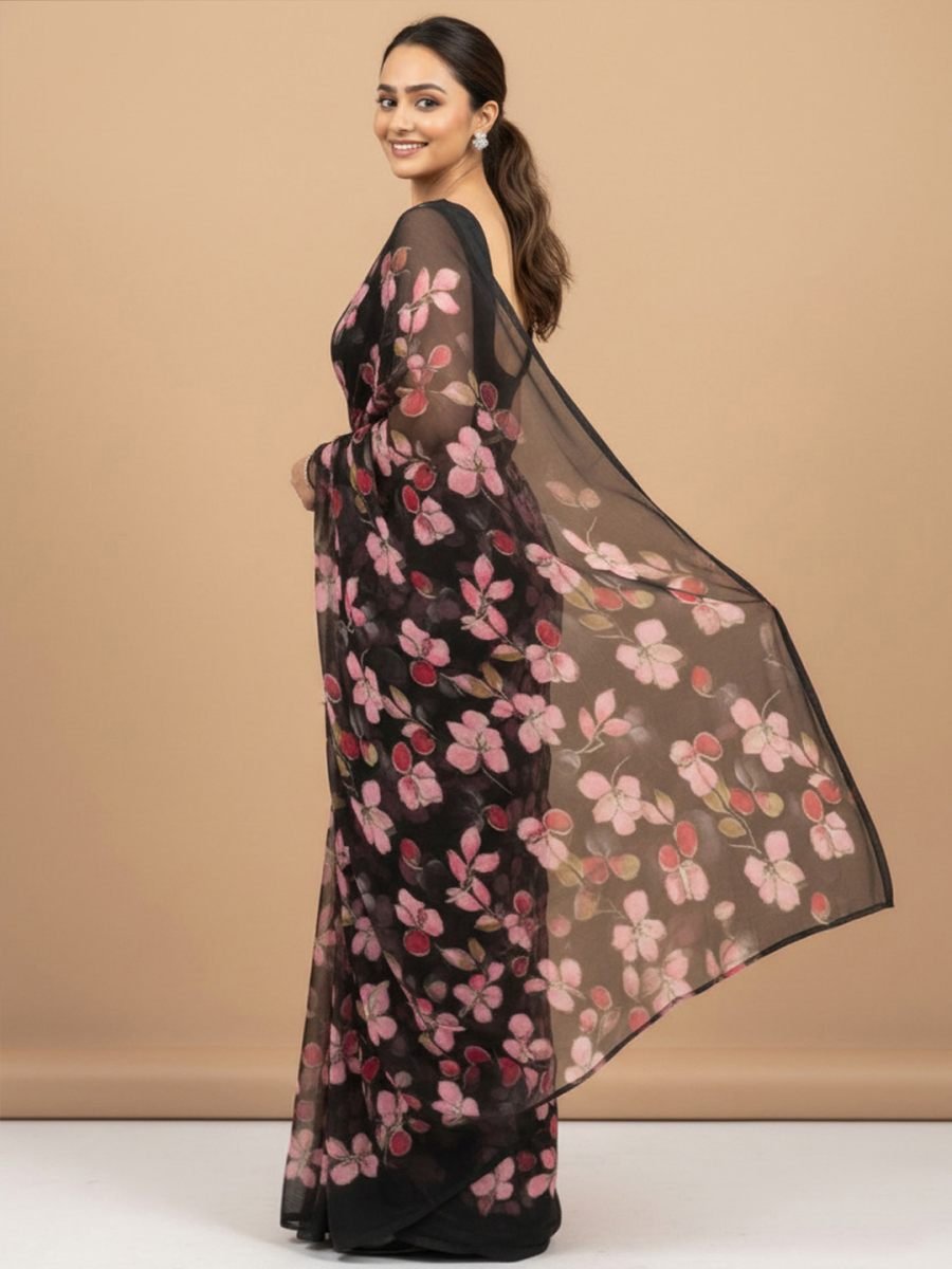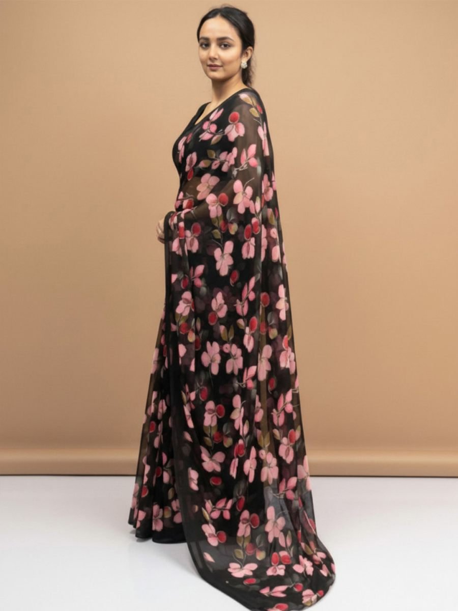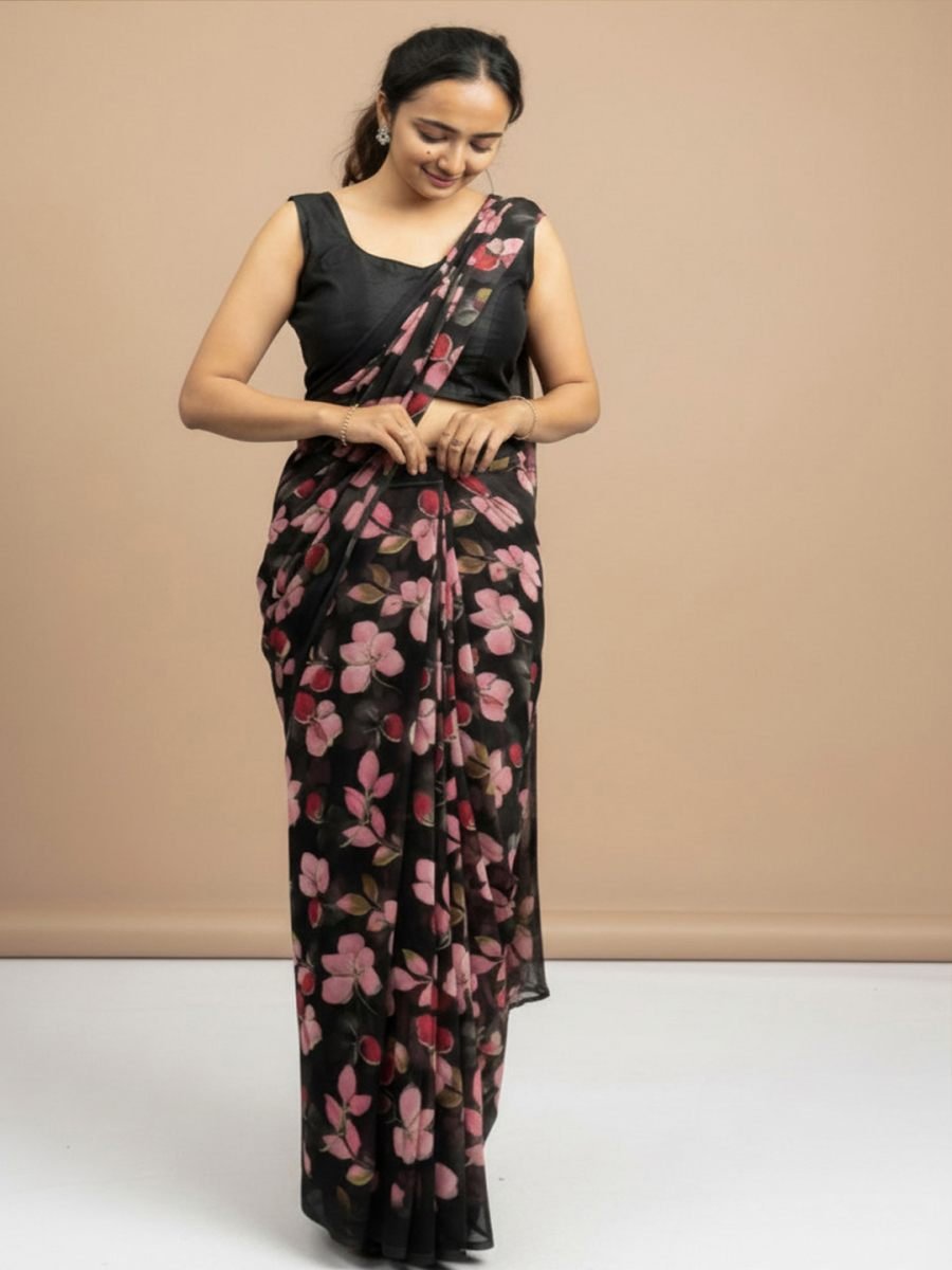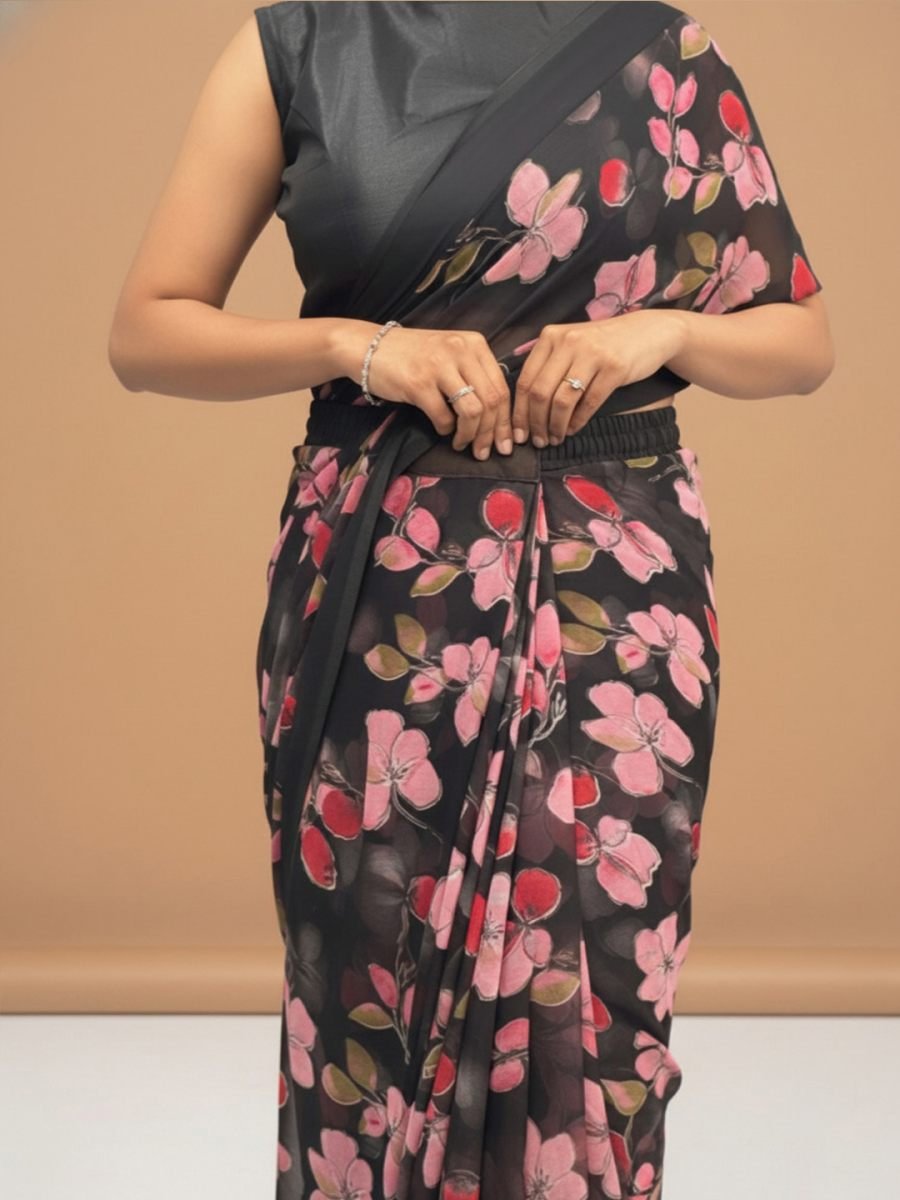 Vibrant Floral Print Georgette Ready to Wear Saree
