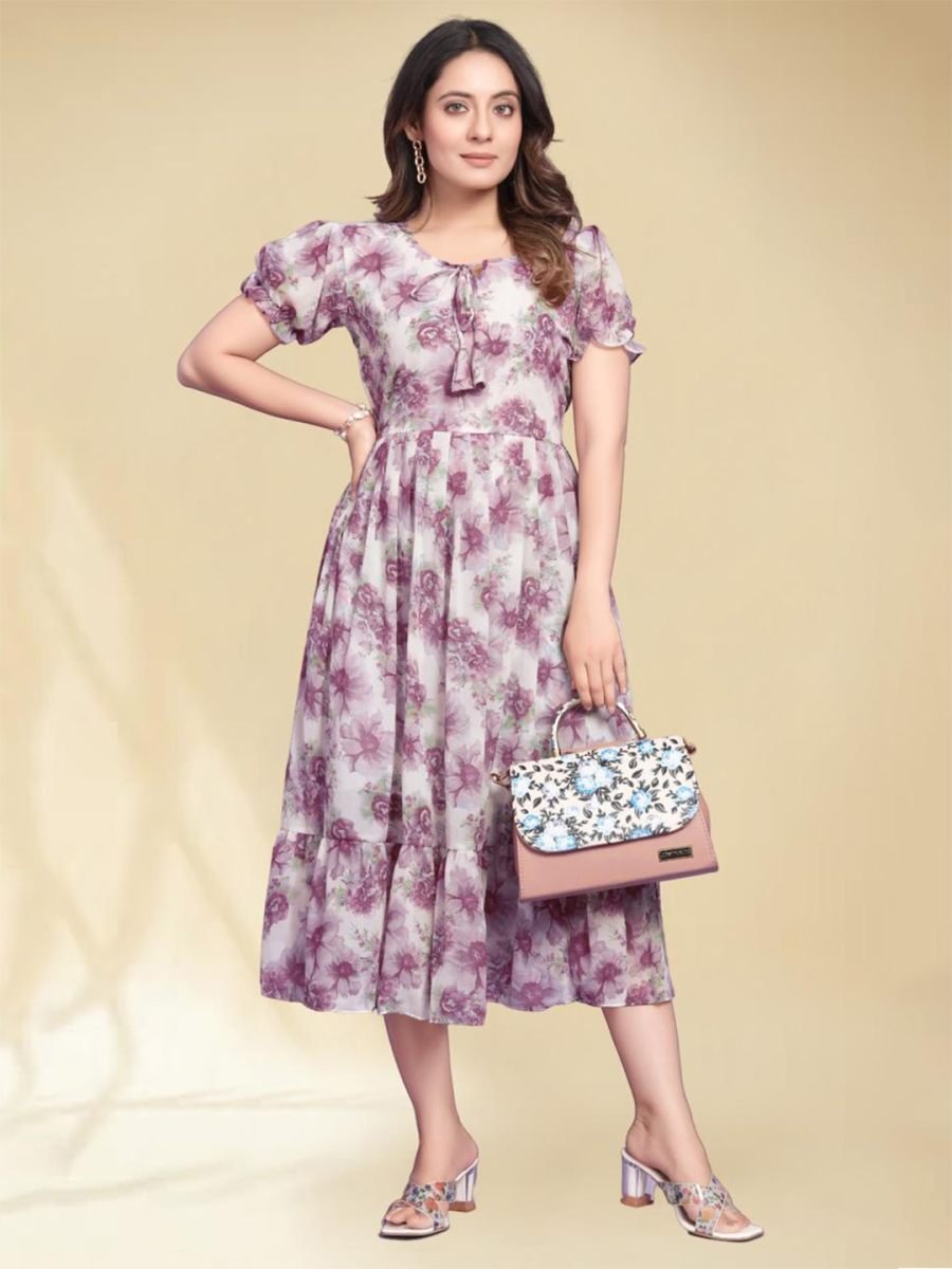 Step into elegance with our Georgette Floral Print Maxi Dress, designed for unforgettable moments. This exquisite dress features delicate puff sleeves and a flattering flared jalar silhouette, combining comfort with style. The vibrant floral print adds a touch of whimsy, making it perfect for parties, weddings, or any special occasion. Crafted from lightweight, breathable fabric, it drapes beautifully and allows for effortless movement. Pair it with your favorite accessories and heels to create a stunning look that will turn heads wherever you go!