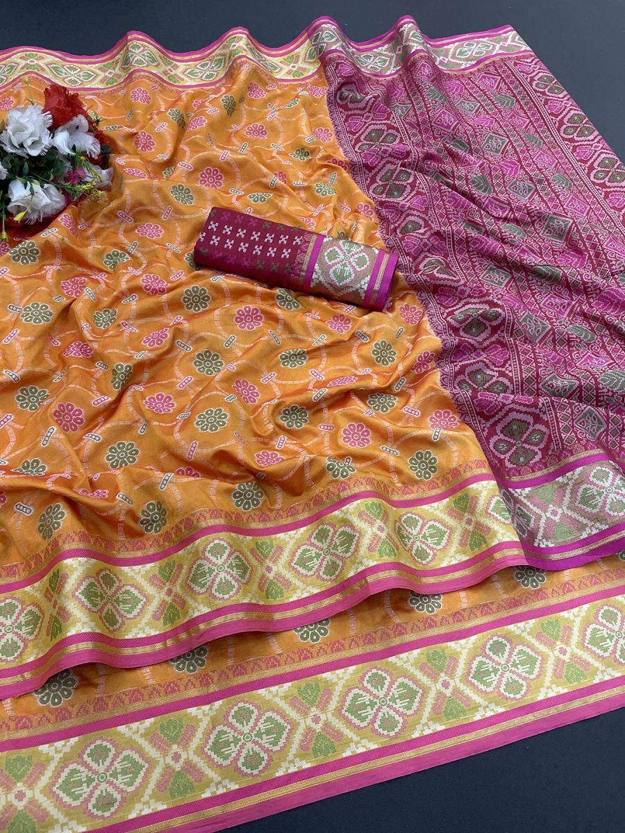 Woven Patola Jacquard Pure Silk Yellow Saree